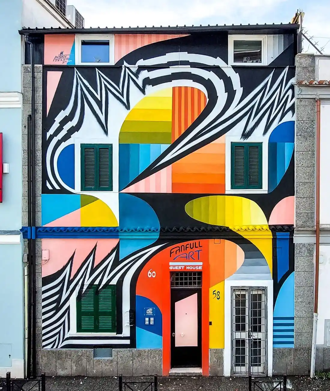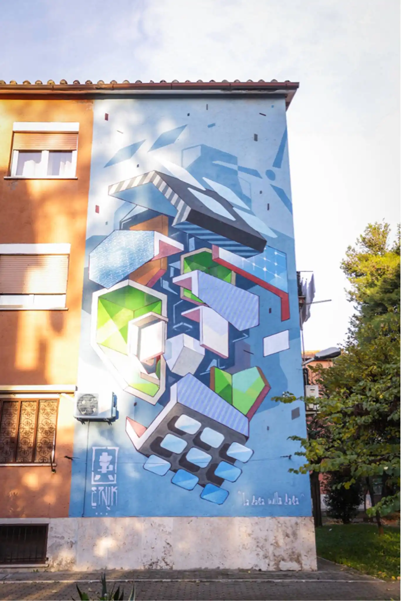 🎨 Street Art a Settecamini – Via di Settecamini 1 L’area di Settecamini, situata nella periferia nord-est di Roma, è stata oggetto di un importante progetto di riqualificazione artistica che ha trasformato diversi edifici residenziali in murales monumentali. La zona è diventata un vero e proprio museo a cielo aperto, grazie al contributo